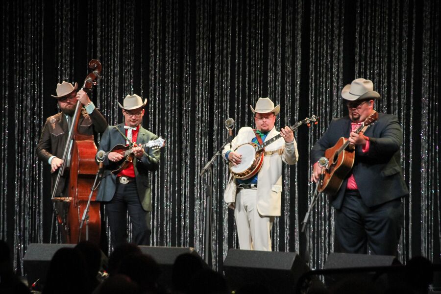 The entertainment at the luncheon was provided by Mile Twelve, Fireside Collective, and Po’ Ramblin’ Boys. All in the same relative age group, their approaches to the music were radically different. Mile Twelve, who came on first, showed how the newer impulses of contemporary popular music can be blended smoothly with the traditions of bluegrass. They featured a mix of classic songs and their own original compositions, mostly taken from their upcoming debut album, Onwards, due for release next month.