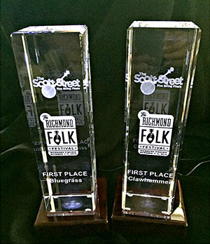 The first place winners receive a handsome crystal trophy, plus a demo recording session at In Your Ear Studios in Richmond, and a $1000 cash prize. First runners up receive $600, with $400 for the 2nd runner up.