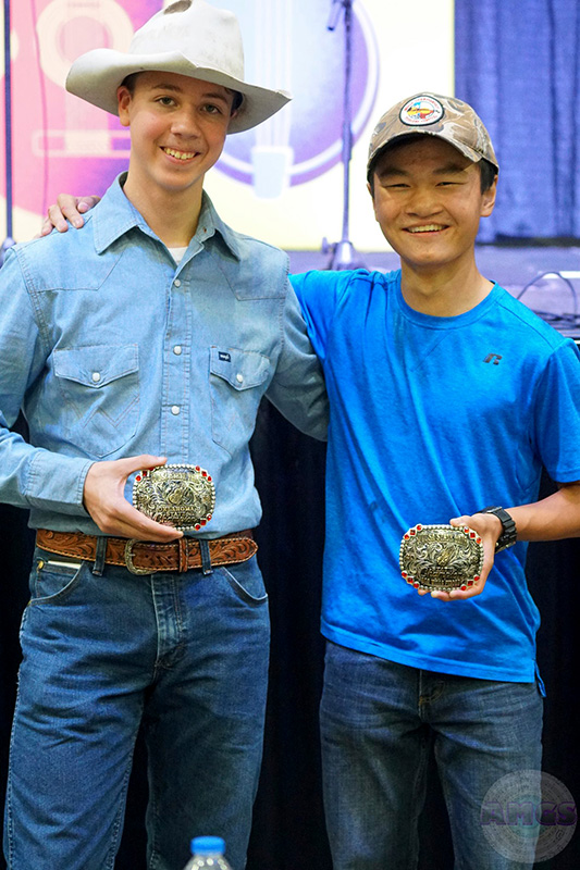 Ages 12-14 make up the division recognized as the Jr-Jrs. First place was taken by Mary Parker (2017 Jr Jr winner). Parker is also homeschooled, and travels to contests with her dad and younger brother. A professional in every aspect, with albums recorded and for sale, Parker did not disappoint. Her fingers literally floated over the strings as she bowed her way to a buckle and $50. This is Parker’s last year in this age group. This contest was one of the closest in points, with a mere three points were between 1st and 2nd. Alexandra Harmon, who is taught by her mother, Karen Harmon, and Emma Pendleton, took 2nd. Not only is Alexandra a showcase of talent, she is also an instructor, teaching students 4- 7 years of age, and already has 4 students under her tutelage. With her mother and her grandmother, Harmon has traveled internationally (Canada, Austria, and Ireland) to play her violin.