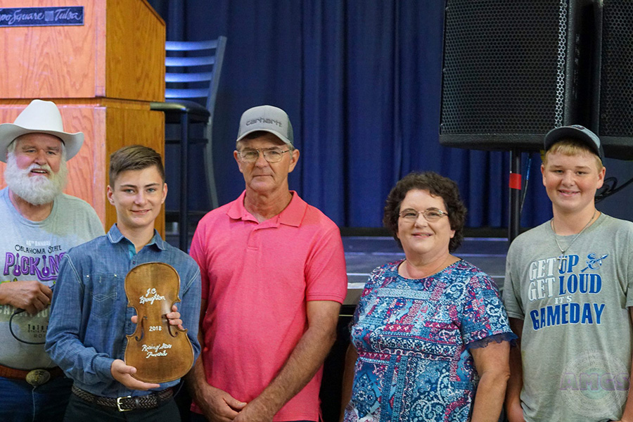 Winner of the open division, and the title of 2018 Oklahoma State Champion Fiddler (plus $1,000) was Ridge Roberts. All day, I had heard this name, Ridge. However, when he took the stage, andratised his bow, I knew why. Roberts has many wins under his belt: 3 National plus Colorado, Texas, and Oklahoma. Not only was Roberts the winner and the champion at the Tulsa State Fair, he was recently awarded the title of World Champion Fiddler in Crockett, TX. The youngest since 1965 to be honored with this title, Ridge also had a supportive side to him. All day long he accompanied many younger contestants, always reassuring them and helping them get set correctly. But this young man is already chasing his dream and pursuing his career. Roberts picked up the fiddle at the age of 7, and today leaves his audience hungry for more. People that grab Ridge’s attention are Bob Wills, Don Rich, and Texas fiddler Terry Morris. At the age of 15, Ridge holds more titles than most people will be awarded in their lifetime.