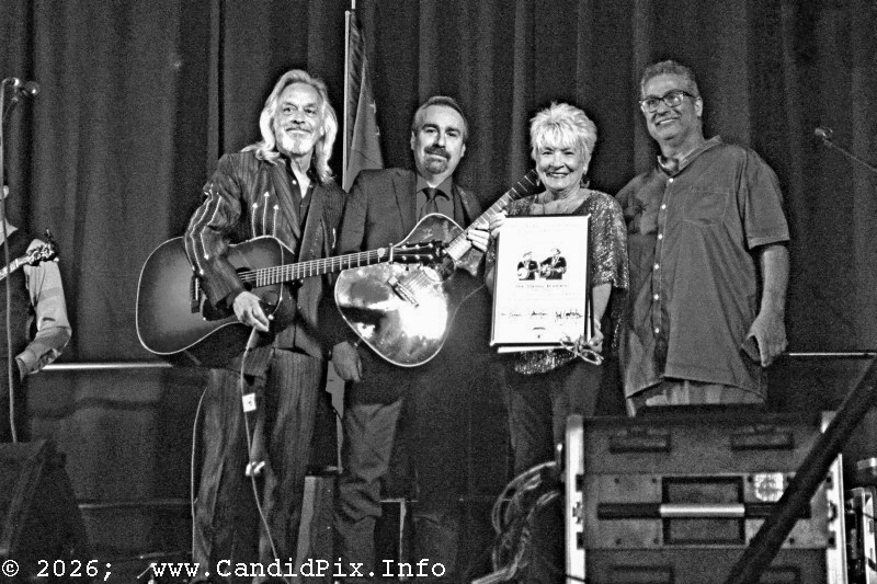 Ralph Stanley II then hosted the Stanley Brothers celebration. He gave a bit of the history of his dad and uncle and was joined by Jim Lauderdale, Lenny Centers, and Don Rigsby. They sang the songs of the Stanley Brothers. Jim Lauderdale, Ernie Evans, and Sherry Boyd presented the “Norman Adams League of Innovators” award in honor of the Stanley Brothers, and it was accepted by Ralph II.
