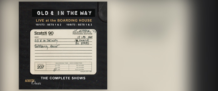 Now, Grisman’s Acoustic Oasis label has released all of the music from those two shows in one package, 55 tracks in all, with 14 cuts not previously released. They are available as HD audio downloads from the Acoustic Oasis web site as Old & in the Way – The Complete Boarding House Tapes.