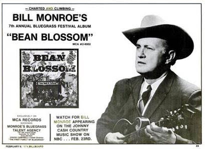 Monroe started the June festival – the Annual Bill Monroe Bean Blossom Bluegrass Music Festival – in 1966 and by 1971 he had established the festival format that was the model on which other festivals were based. “The June festival grew in size and stayed perennially profitable”, according to Thomas A Adler as he wrote in his excellent book Bean Blossom: The Brown County Jamboree and Bill Monroe’s Bluegrass Festivals (University of Illinois Press, 2011). *