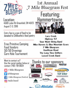 The 1st annual 7 Mile Bluegrass Festival has been announced for 2019, to be held August 2-3 in Greenfield, OH. It will serve as a meal raiser for the Chillicothe, OH food pantry, hosted by the region’s 7 Mile Bluegrass band who give the festival its name.