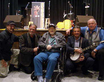 Tim White, host of the PBS program Song Of The Mountains, sent along this photo and story about Larry getting a night out recently to hear some bluegrass.