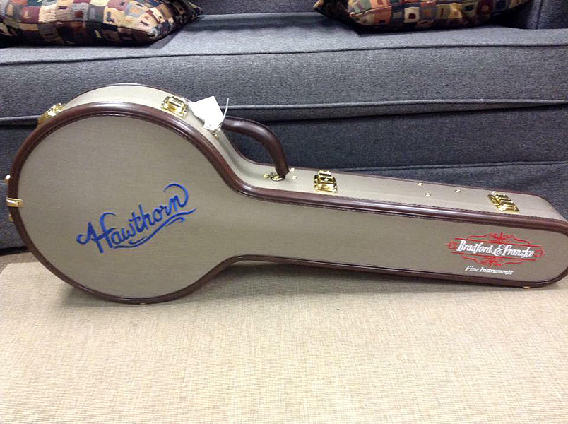One such is a Hawthorn RB-7 style banjo which was recently sent to us for review. These pro grade instruments, along with a line of guitars and mandolins, are made in Kansas City, MO by Glenn Bradford and Mark Franzke who launched Bradford & Co Fret Shop in 2015. Glenn owns the business with his son, and is the banjo guy, with Mark on staff doing assembly and finishing. They sell directly to the public and through bluegrass-centered retailers around the country.