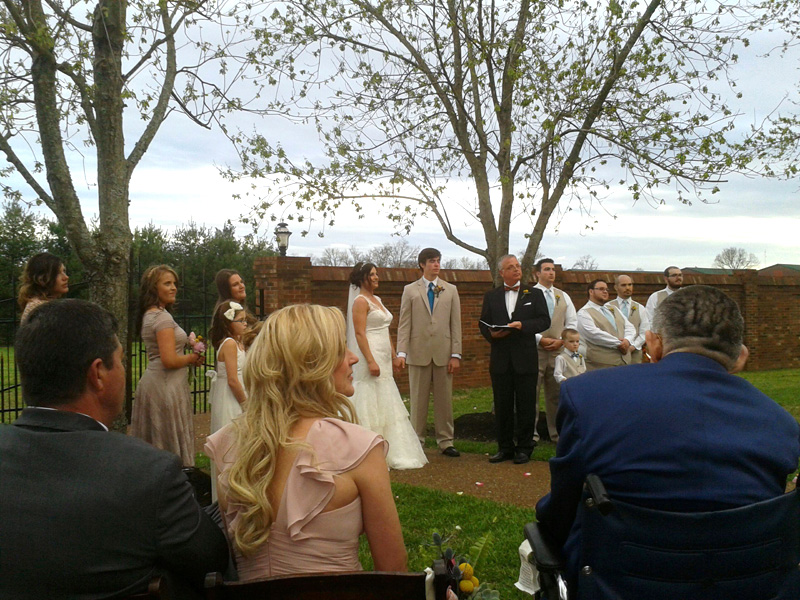 A reception was held afterwards in the mansion, with appropriate bluegrass music played by a DJ. Notable songs included John & Mary from IIIrd Tyme Out and You Don’t Know How Lucky You Are from mom and mother-in-law, Rhonda Vincent.