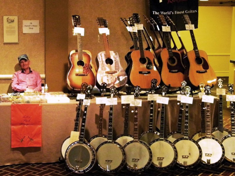 Darrell McCumbers' booth at SPBGMA 2013 - photo by Valerie GabehartI visited with well known musician and vintage instrument dealer, Darrell McCumbers. A native West Virginian, and banjo player for the McCumbers Brothers, Darrell now lives in southwest Virginia (Sammy Shelor is his neighbor) and is known primarily for his knowledge and inventory of pre-war flat head Gibson banjos. “I bought my first original flathead five-string, a 1934 RB-4, in St. Mary’s, West Virginia in 1970 for $125.00,” McCumbers remembers, and in the 1980s the Grateful Dead’s Jerry Garcia “tried to buy it for $20,000.” Fortunately for McCumbers, he didn’t sell, and still owns it today.