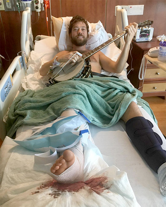 They rushed me to the hospital for surgery, and I was playing banjo in bed the next morning – which others in the hospital actually didn’t consider torture. Imagine that. I was onstage 24 hrs later with Keller Williams.