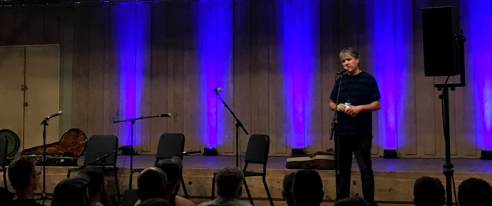 Béla Fleck welcomes the class at the 2018 Blue Ridge Banjo Camp - photo by Brian Swenk “Immerse yourself.” If there was one consistent theme to the inaugural Béla Fleck Blue Ridge Banjo Camp, it wasn't necessarily the technical mechanics of banjo