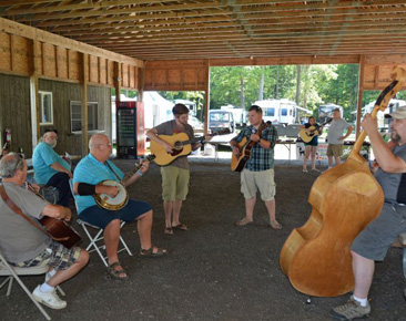 Activities for festival attendees at the Milan Bluegrass Festival in Milan, Michigan kicked off Wednesday afternoon with a jam and petting zoo hosted by the Southeast Michigan Bluegrass Music Association. Jammers, listeners, and kids of all ages had a fine time. The Association