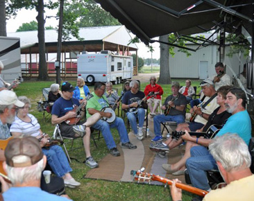 It is Tuesday of the 44th Charlotte Bluegrass Festival held at the Eaton County Fairgrounds in Charlotte, Michigan. It is the longest running bluegrass festival in the state. Campers began arriving on Saturday and jamming has begun in earnest! Wednesday evening is