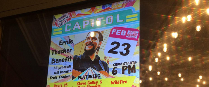 Last Friday night, an assortment of bluegrass stars came together to support one of their own. Together with Wilson Pickins Promotions, the Capitol Theatre in Greeneville, TN hosted an all-star benefit for Ernie Thacker and his family as he battles