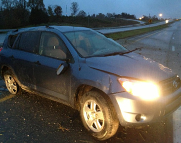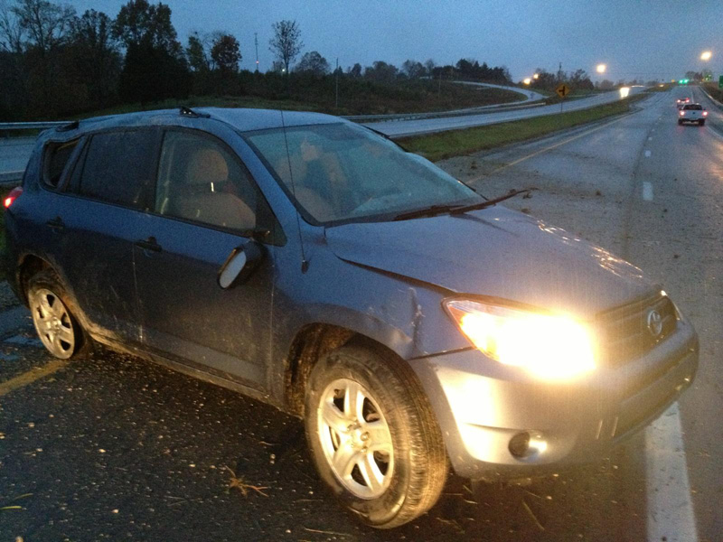 Like Carl, Kyle lost control of his car on slick roads and rolled several times. It broke his windshield, knocked the top rack off the car, broke the back axle and knocked the back tires off the rims.