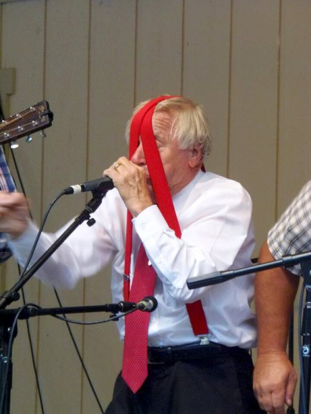 Hall of Famer, Little Roy Lewis (the sixth of eight Hall of Famers to perform this week) took the stage with The Little Roy & Lizzy Show, and Little Roy’s wide open style of music and showmanship was on full display. I think it is safe to say that Little Roy had more energy than any human being at Bill Monroe Music Park this week. Known for his on-stage antics, Little Roy was beat at his own game when show promoter, Tim Dillman, crashed in on Little Roy’s signature song, Honey In The Rock.