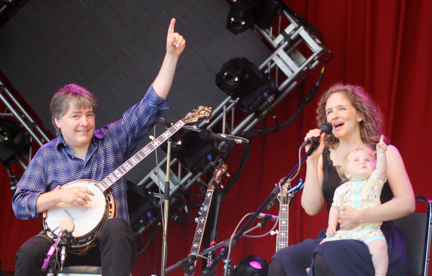 Béla Fleck and Abigail Washburn on stage with their son, Juno - photo by Dave RobertsA tour earlier this year was well-received, and it looks like this mommy and daddy format will be their primary performance vehicle until little Juno is a little older. He did make an appearance in an Uncle Earl reunion rehearsal video this Summer, but the current plan is for him to stay backstage on their shows.