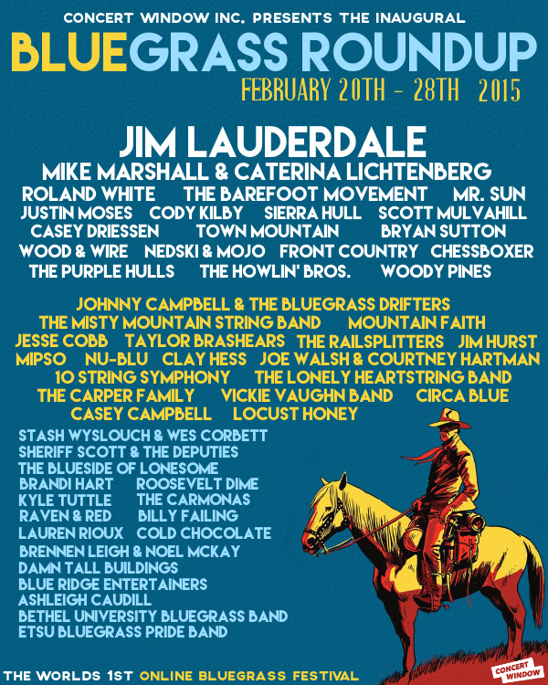 A full list of players and bands scheduled during Bluegrass Roundup can be found on the Concert Window site.