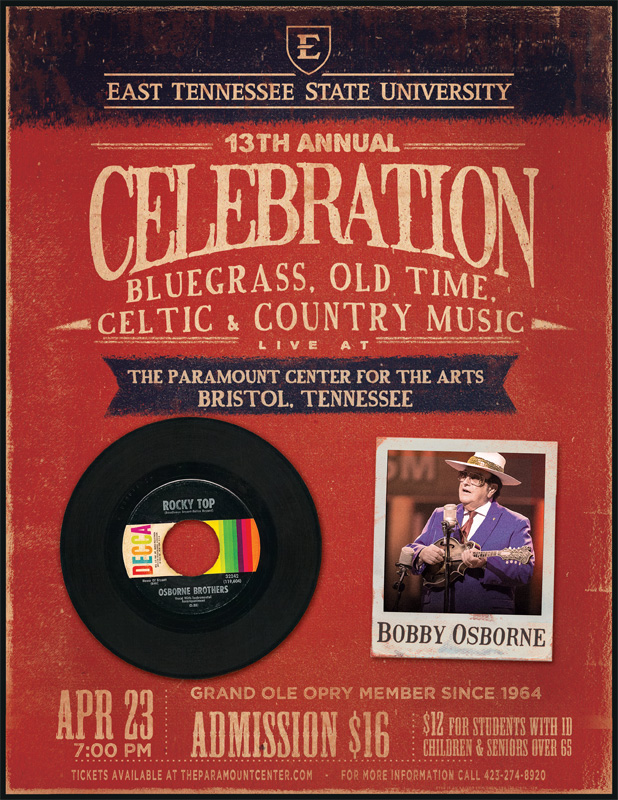 paramountThe Bluegrass, Old Time, Celtic & Country Music program at East Tennessee State University will be honoring the one and only Bobby Osborne this Saturday (4/23) at a concert to be held at the Paramount Center for the Arts in Bristol, TN.