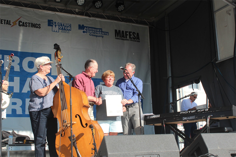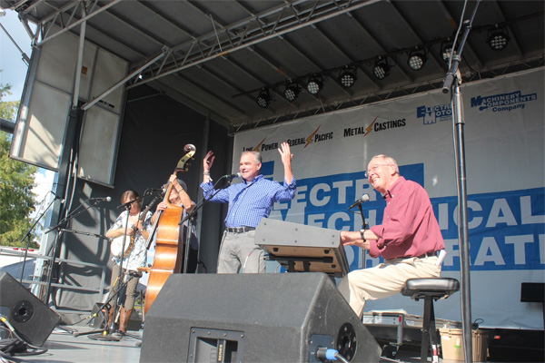 It’s worth mentioning the wonderfully symbolic start to the festival situation right on the Virginia-Tennesee state line. The Amateurs kicked off Rhythm and Roots on the State Street Stage. Senator Tim Kaine (Democrat from Virginia) and Senator Lamar Alexander (Republican from Tennessee) joined forces with a local bluegrass group to create The Amateurs. Their set list was equally bipartisan: Turn Your Radio On, Keep on the Sunny Side from the Carter family, I Saw the Light (complete with a train passing by), Hard Times Come No More and The Tennessee Waltz. Senator Alexander talked about finding the original score for The Tennessee Waltz, written on the back of a matchbook, when he was Governor. The original was given to the University of Tennessee but he had a few copies made. He presented one of those, which he described as the “magna carta of country music” to Leah Ross for the Birthplace of Country Music Museum.