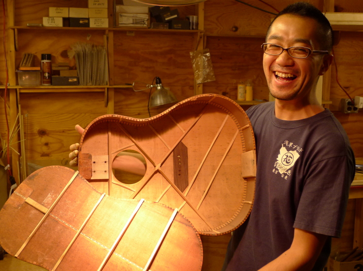 The process had been delayed while Bourgeois looked for a opening in his schedule when he could dedicate the necessary time for the tedious and detail-oriented work required for a project of this sort. Fortunately for both he and Bryan, Japanese guitar restoration specialist Shin Ichikawa agreed to spend time this July at the Bougeois shop in Maine, where he will oversee the process.