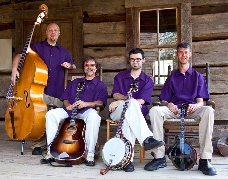 The Blu-J’s are Derek Vaden on banjo, Lee Chapman on bass, and Barron Rogers on mandolin. Jerry plays guitar and sings the lead, with all the members contributing to the trio and quartet vocals.