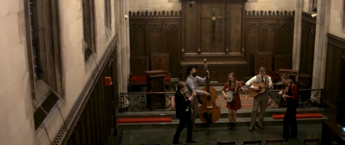 Appearing in the video are students Theo Macmillan on fiddle, Brenna Macmillan on banjo and vocal, Matt Parsons on guitar, and Casey Papendieck on bass, with Al White on mandolin. Theo and Matt have since graduated, and Julie Nelms now plays fiddle with the band. Al has moved to guitar.