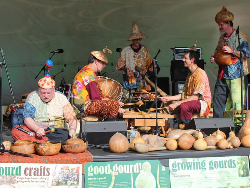 Sustainability was wonderfully illustrated by the Richmond Indigenous Gourd Orchestra. This colorful group grows its own gourds in a variety of sizes and shapes and fashions them into instruments (and hats too!). The orchestra included drums, lutes, flutes, shakers and more. Fans were amazed to hear the infectious rhythm coming from the homegrown instruments.