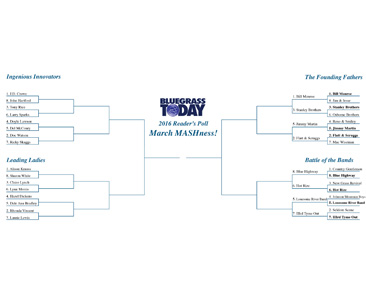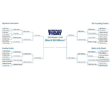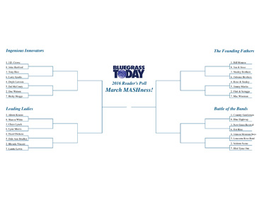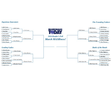 Everyone seems to be having fun with our March MASHness 2016 reader poll, where we are asking you to choose your favorite bluegrass artist through a tiered bracket that largely mirrors the NCAA basketball tournament, also coming to its conclusion