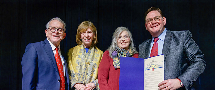 Ohio Governor Mike DeWine, Fran DeWine, Tammy Mullins, and Joe Mullins - photo © Michael George Joe Mullins & The Radio Ramblers received a pair of special surprise treats at their final Ohio performance on January 9. It was their next-to-last show