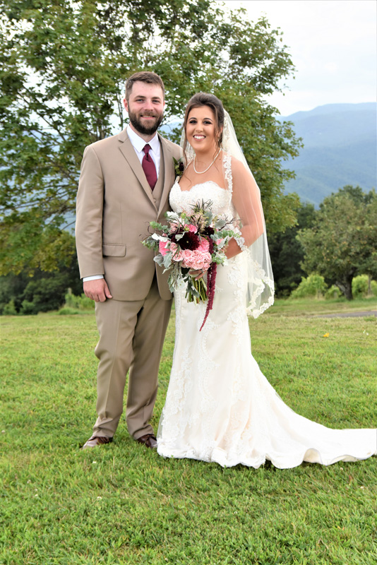 The couple exchanged vows on a hilltop under a large maple tree, with their beloved Blue Ridge Mountains serving as the backdrop. The wedding was attended by family and friends with emotions running high, as all wished the newlyweds good luck in their future.