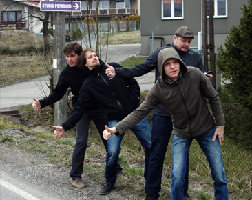Current membership includes Michal Wawrzyczek on banjo, Tomáš Juřena on guitar, Pavel Duda on bass, and Karel Začal on reso-guitar. All four members sing.