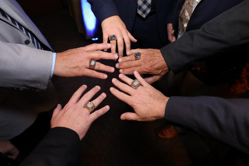This past weekend, the guys handed out matching rings to three members who had been with them for at least five years, including Jamie and Darrin wwho have been there since the start. Honored were mandolinist and vocalist Jeff Parker, with 10 years in the band, drummer Bob Mummert with 7 years, and banjo picker Jessie Baker with 6 years. Gus Arrendale, CEO of their sponsor, Springer Mountain Farms, was also on hand for the ceremony.