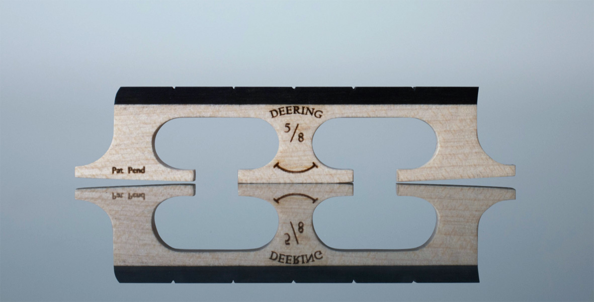 Deering Smile banjo bridgeDeering Banjo Company has introduced a new banjo bridge design, so new that they have applied for a patent. Their Smile Bridge is so named for it’s unique shape, which does resemble a smile.