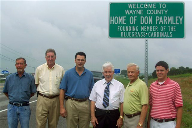 In April 2007 a ‘Day with Don Parmley’ was held in Wayne County, Kentucky. The event featured some great musical performances and a chance for local residents to spend time with Parmley. Signs stating “Welcome to Wayne County, Home of Don Parmley, Founding Member of the Bluegrass Cardinals” were erected on KY 90 at the Clinton and Pulaski county lines.