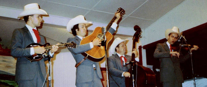 Dudley Connell with The Johnson Mountain Boys playing his D-28 – photo by Peggy Detweiler