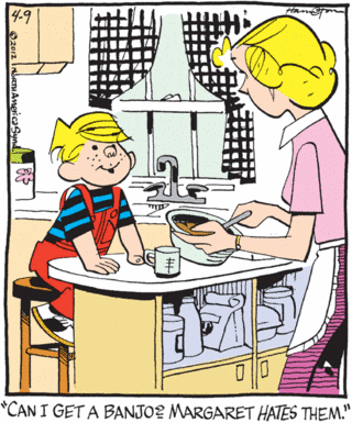 It seems that the venerable Dennis The Menace comic strip has jumped on the banjo bandwagon – but not for the reason that most 5 stringers would admit.
