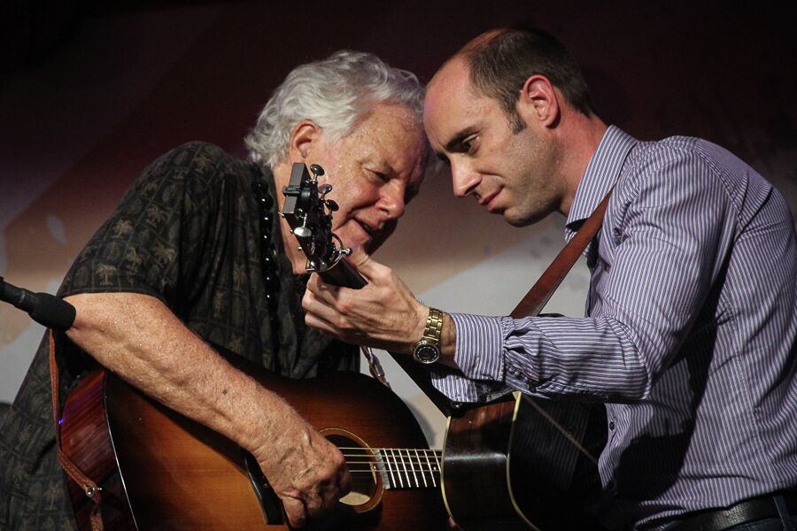 Peter Rowan relaxes backstage at the August 2017 Gettysburg Bluegrass Festival – photo by Frank Baker