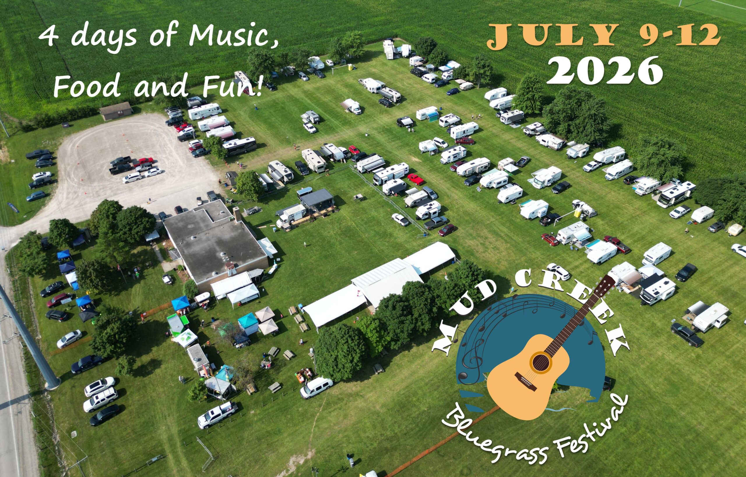 Mud Creek Bluegrass Festival is an Annual Event featuring over 7 Bluegrass Bands in Parkhill, Ontario the 3rd weekend in July each year. Friday Night is Country Night. It is an outdoor rain or shine event. Come for the day or camp for the entire event and jam with your Bluegrass friends and enjoy a ton of music, food and fun!
