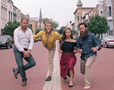 The Flatbellys are Joshua Rilko on mandolin, Mark Lavengood on reso-guitar, P.J. George on bass, and Lindsay Lou on guitar. Find out more about them and their music online.