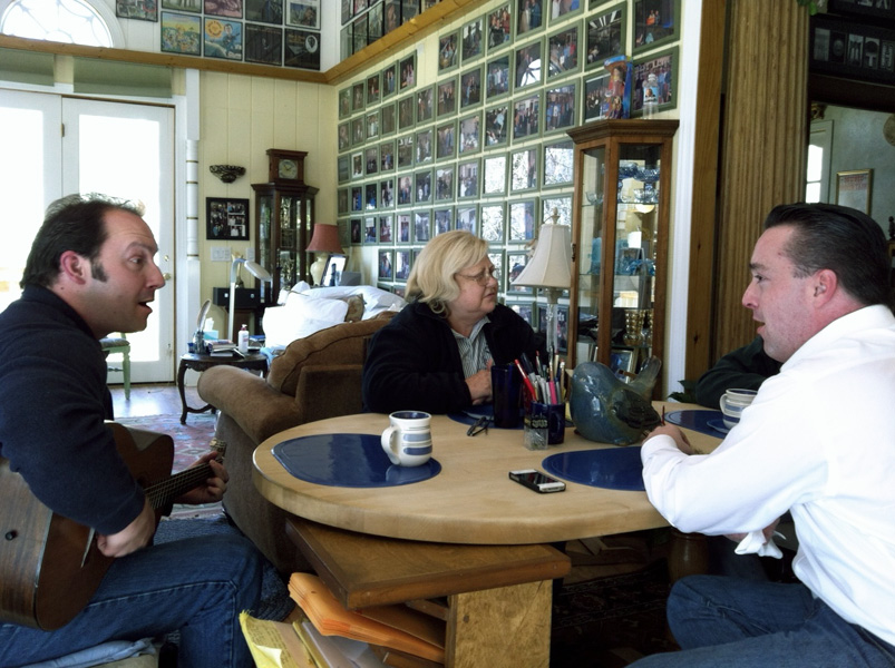 They seemed delighted by our rendition of their Big Blue Roses. Tom T. continued by saying that he heard a ‘magic’ in our vocals that he doesn’t hear very often. Dixie asked ‘How can we help?’ We explained that we were in need of about 3 more songs to finish our first CD. She offered to search their database for a good fit and if they couldn’t find one, they’d just write one.