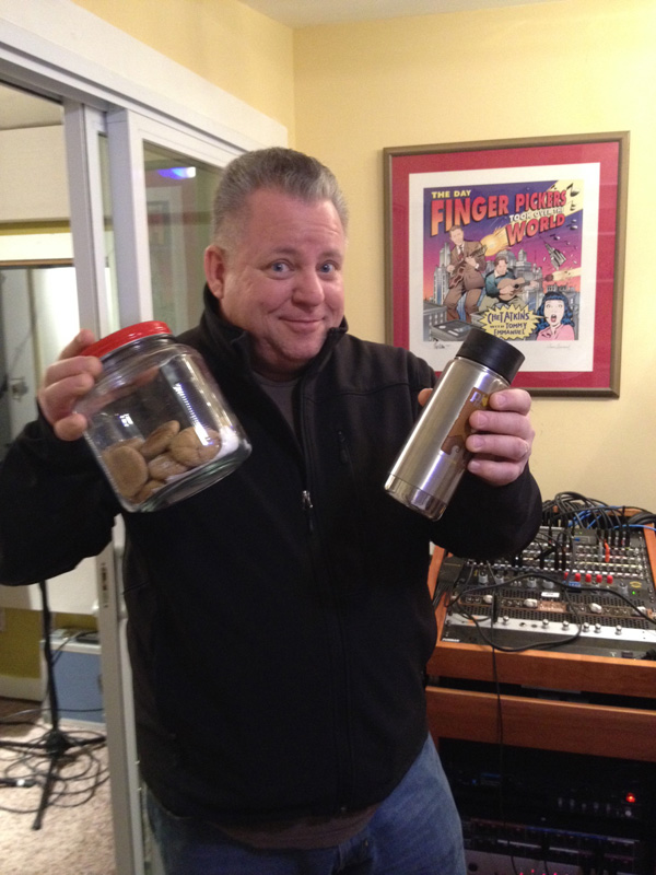 Although they took a significant hit Monday, there were plenty homemade gingersnaps left for Bryan Sutton (guitar, Hot Rize) when he came in to play on Amos & Sarah with me Tuesday morn. This song is a Civil War story from the lives of my co-writer Melissa Ames’ great great grandparents. We wrote it about ten years ago and I think she had almost given up on me ever cutting it. But it’s always amazing how things work out; 2014 marks 150 years since Amos was imprisoned at Andersonville.