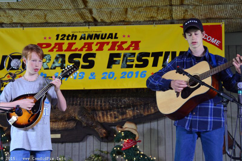 Every bluegrass festival has its surprises, and Friday at Palatka was no exception. The day started with an open stage. Two youngsters went out and played several tunes on guitar and mandolin – and very well. The boys are 11 year old Aaron Koch and his 15 year old brother Justin. Aaron has only been playing mandolin for the past 6 months! It is their very first bluegrass festival.