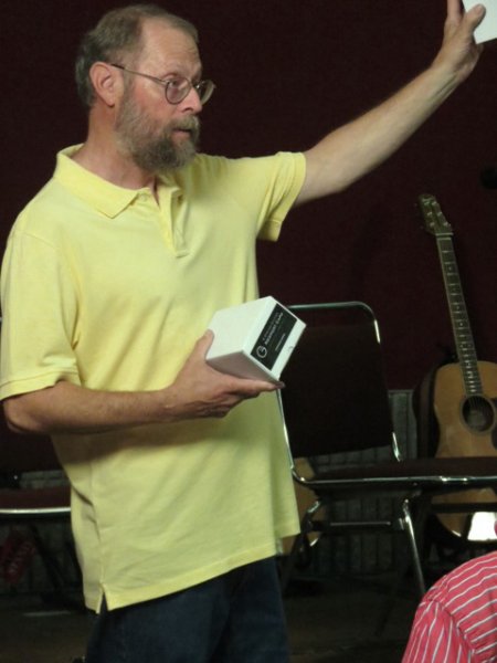 Dana Bourgeois told us yesterday afternoon that he had to let the guitar dry out in a climate controlled area for two full years before attempting a reconstruction, followed by mold abatement, repair and a finish overspray. Noted Japanese luthier and restoration specialist Shin Ichikawa had been enlisted to assist on the project, and he was on hand last night to pick a few with an all-star panel of flatpicking monsters.