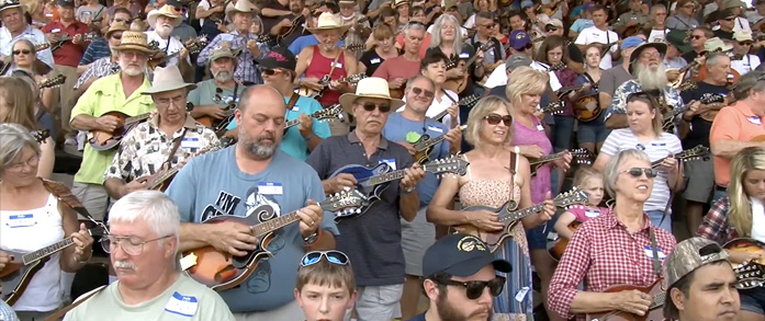 Thanks to the folks at the Mountain Music Project, we have this video of the performance of Angeline The Baker featuring 491 mandolins at last month’s Old Fiddler’s Convention in Galax.