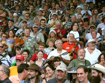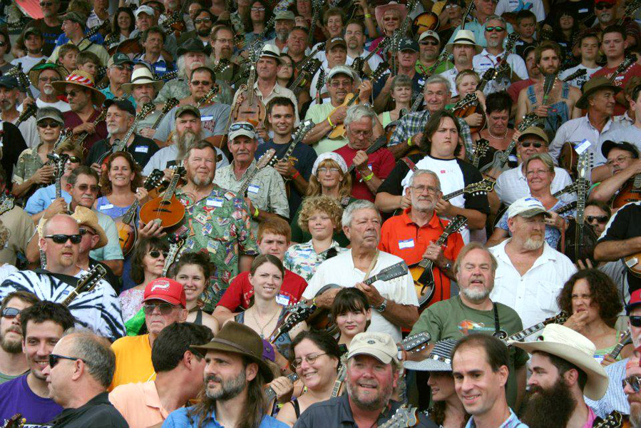 We have learned from Tara Linhardt that the attempt to break the record for the largest mandolin ensemble at the 2012 Old Fiddlers Convention in Galax has been certified by Guinness as the new world mark.