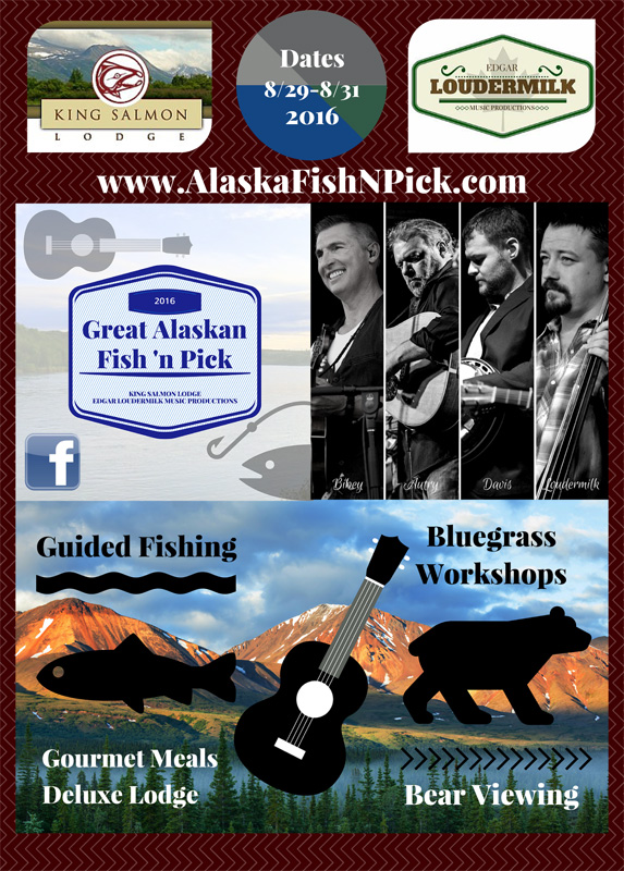 Now Edgar Loudermilk is getting into the act with a new event called the Great Alaskan Fish ‘n Pick, to be held for the first time in August of this year in King Salmon, AK. It will combine 3 days of instrumental bluegrass workshops taught by top professional players, with Alaskan fishing (with local guides), and bear watching opportunities.