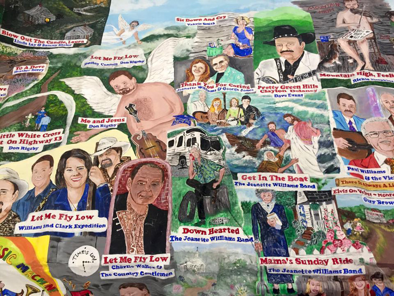 They also have the hilarious, hand-painted banner that Miss Dixie displayed at World of Bluegrass and other festivals for a few years which featured her artistic likenesses of their many Blue Circle Records artists. Many a bluegrass singer was glad to see that one put away, now back on exhibit in Owensboro.
