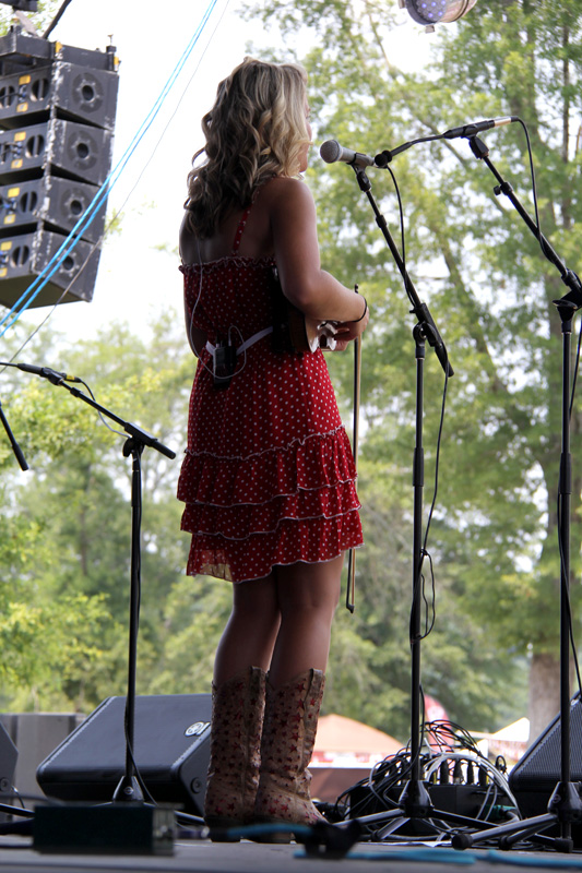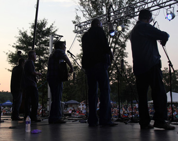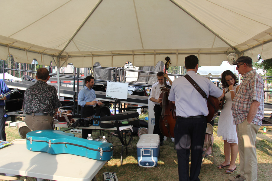 Day One headliners were the Steep Canyon Rangers. The band drove 14 hours through the night after performing Friday night in Michigan, and wore their traditional dress shirts and ties on stage. Fiddle player Nicky Sanders added a sports coat to his wardrobe. On this sweltering night, his fiddle playing was hotter than the weather.