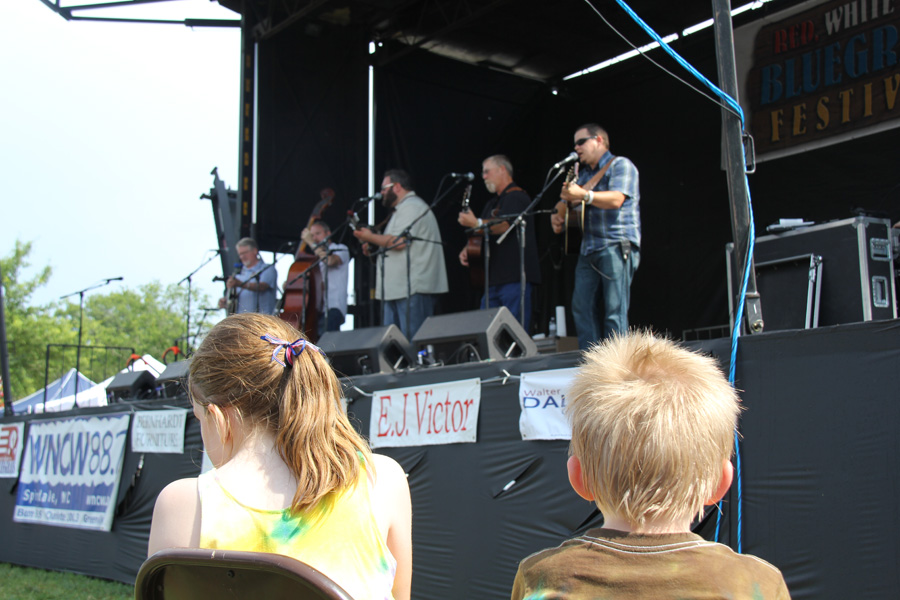 To say thousands braved day one of Red White & Bluegrass in Morganton, North Carolina is an understatement. While temperatures reached 105 degrees, fans searched for every square inch of shade. One festival-goer joked “it was so hot the birds were using oven mitts to get worms out of the ground.” Vendors reported bottled water as the day’s best seller.