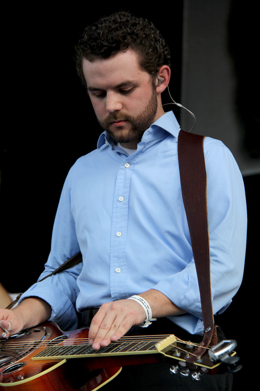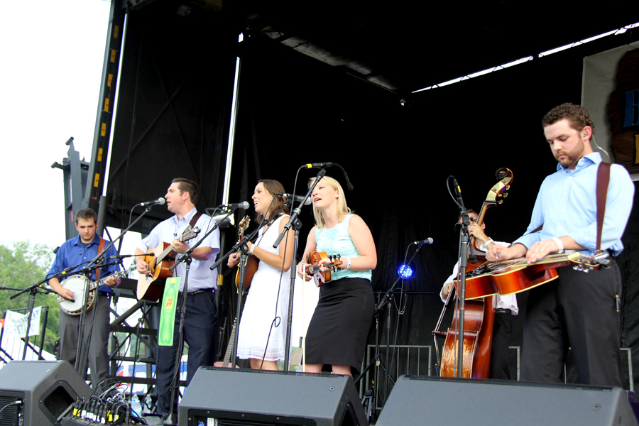 Day One headliners were the Steep Canyon Rangers. The band drove 14 hours through the night after performing Friday night in Michigan, and wore their traditional dress shirts and ties on stage. Fiddle player Nicky Sanders added a sports coat to his wardrobe. On this sweltering night, his fiddle playing was hotter than the weather.